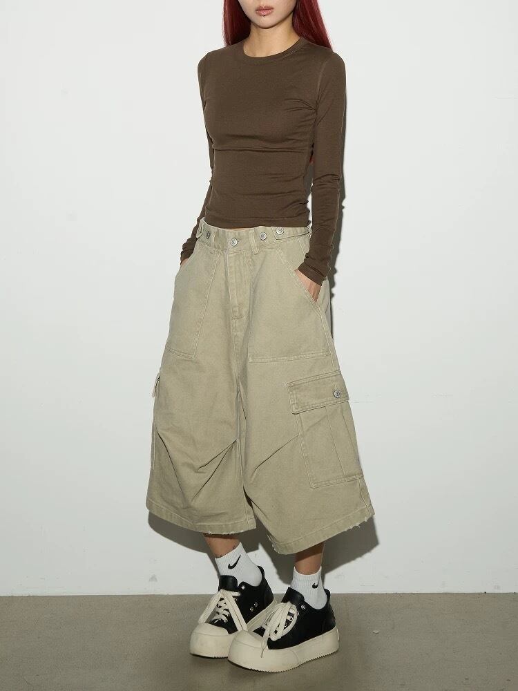 【MICHINNYON】CARGO CHINO WIDE SHORTS