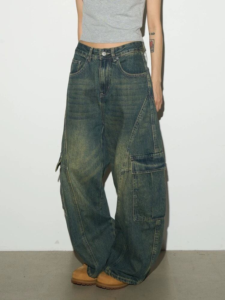 【MICHINNYON】SIDE POCKET WIDE LEG JEANS