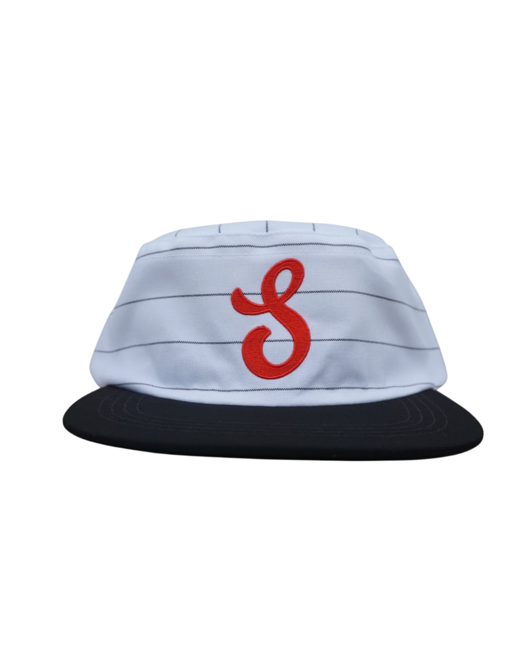 通常のピルボックスキャップとは違い、スナップバックになっているのが印象的。
