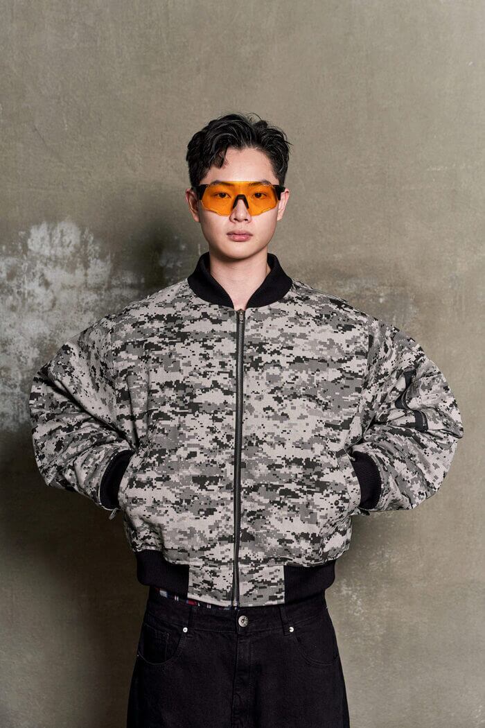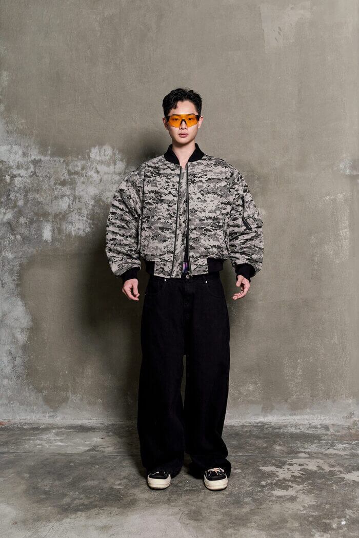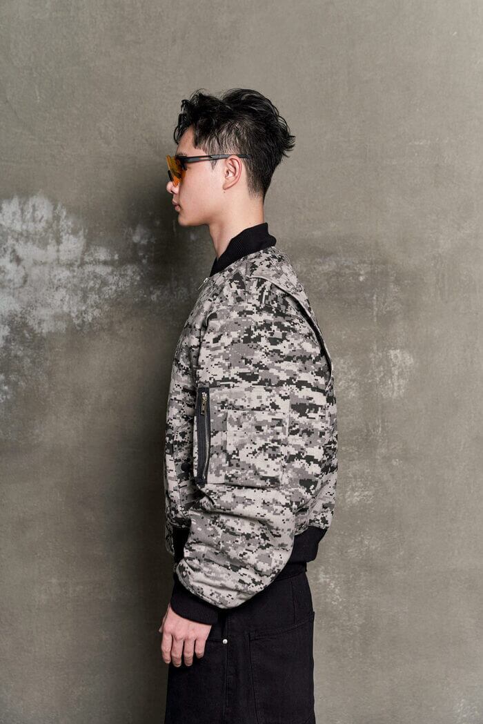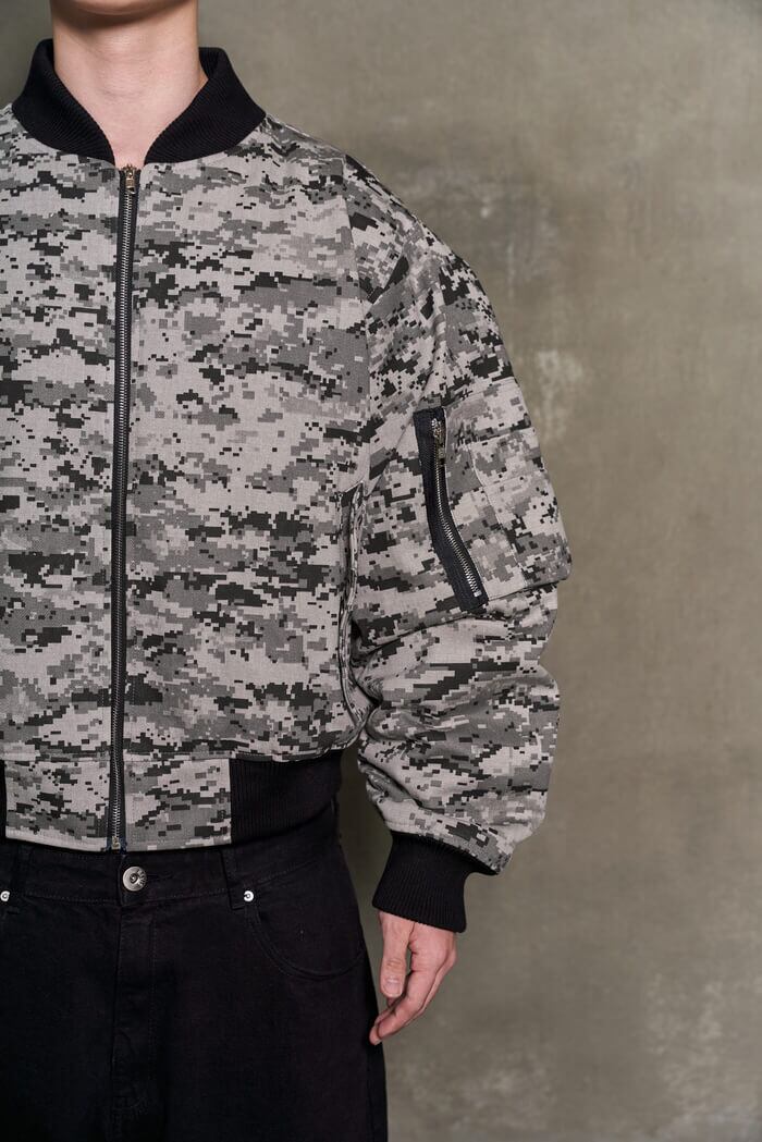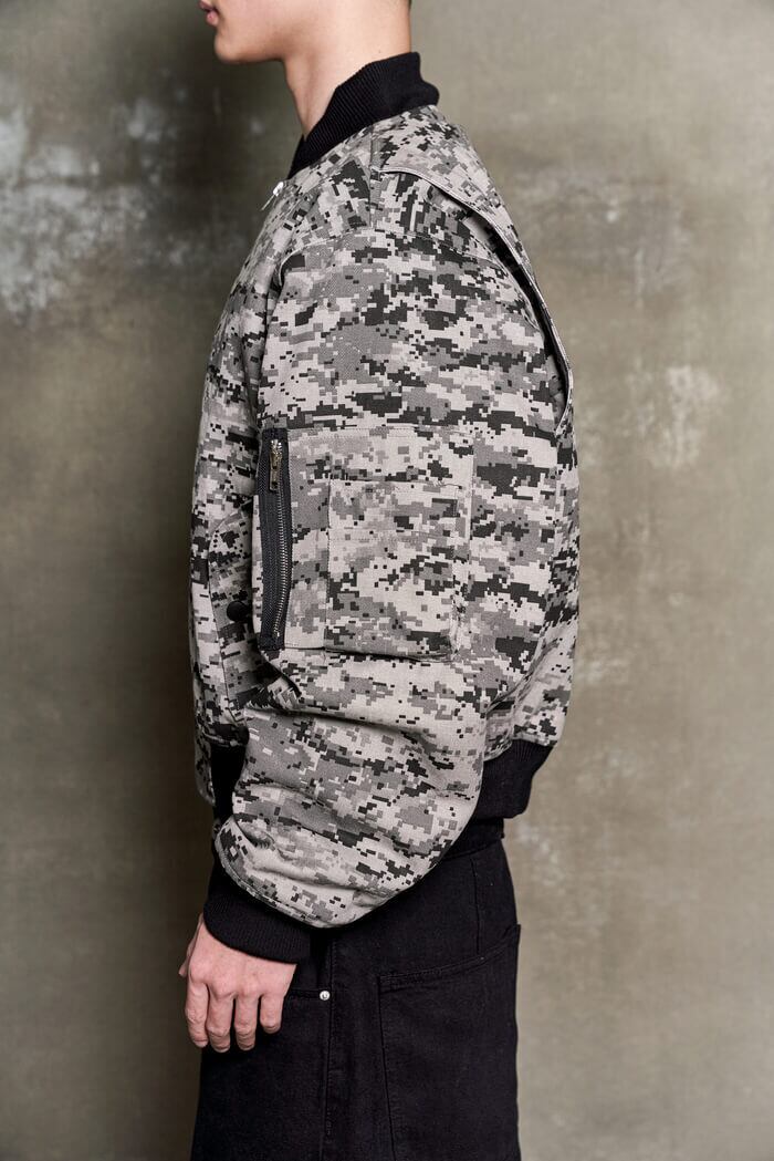 【BEVIS STUDIO】DIGITAL CAMO BOMBER JACKET GREY