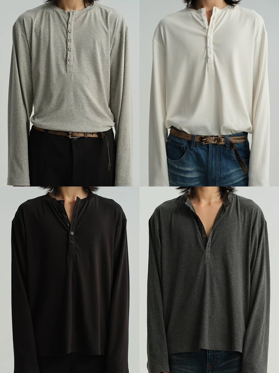 【JCAESAR】JCAESAR HENLEY COLLAR LONG SLEEVE
