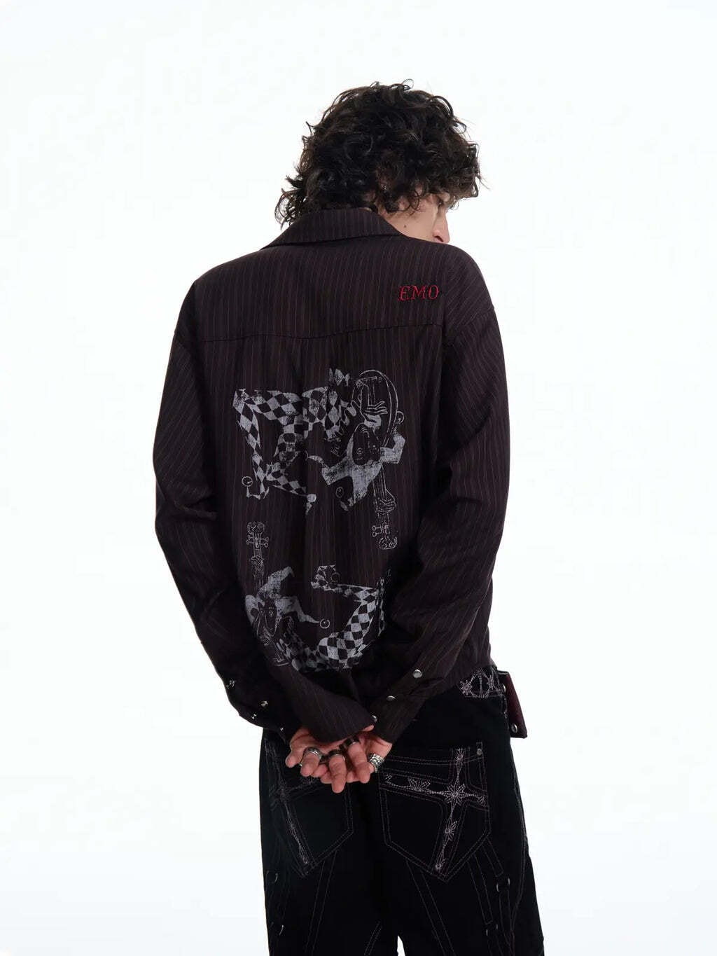 【EMOBROTHER】EMO "Mystic Jester" Striped TR Button-Down BLACK