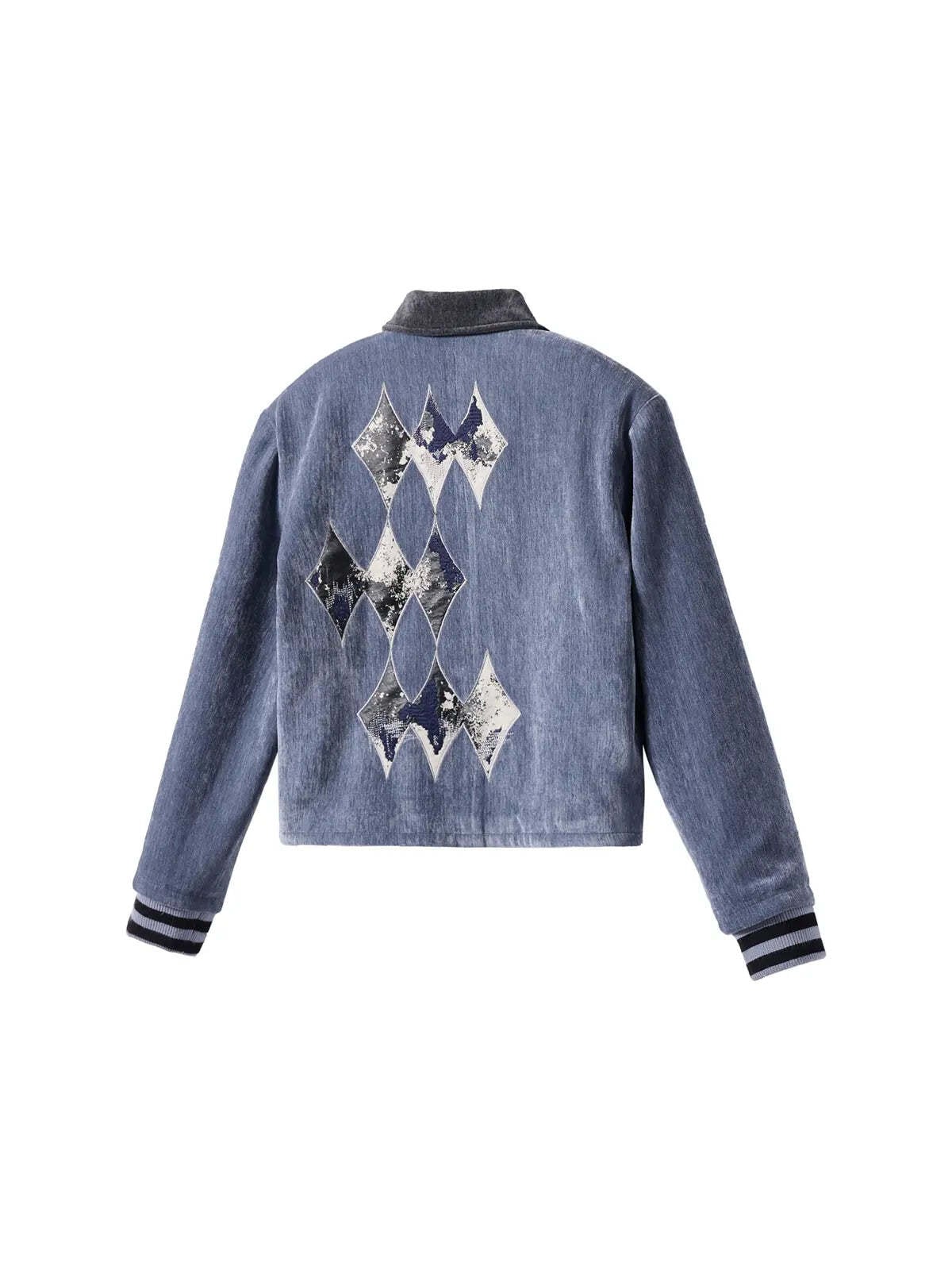 【EMOBROTHER】EMO Vintage Velvet Panel Baseball Jacket