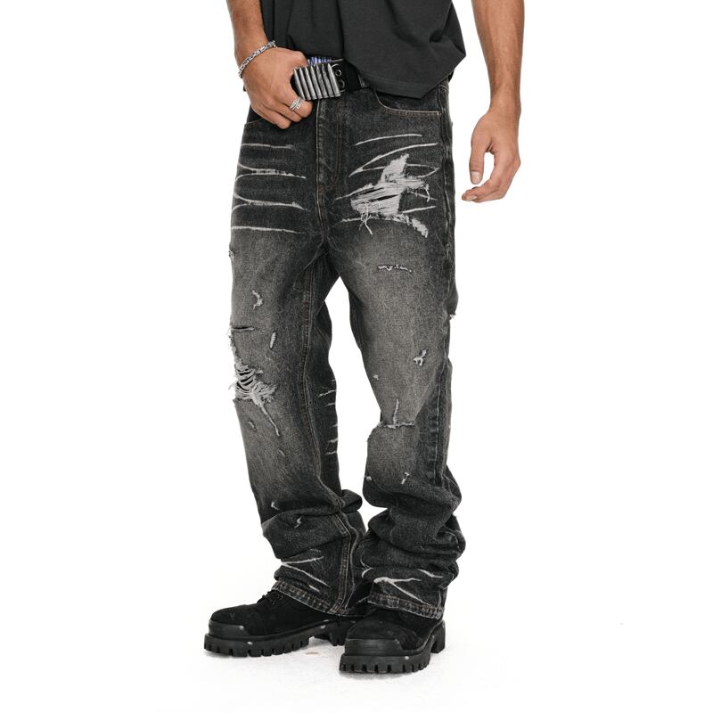 【ANTIDOTE WORLDWIDE】Irregular Ripped Jeans