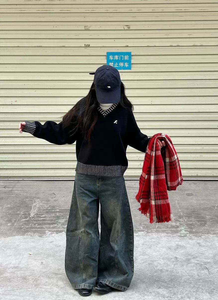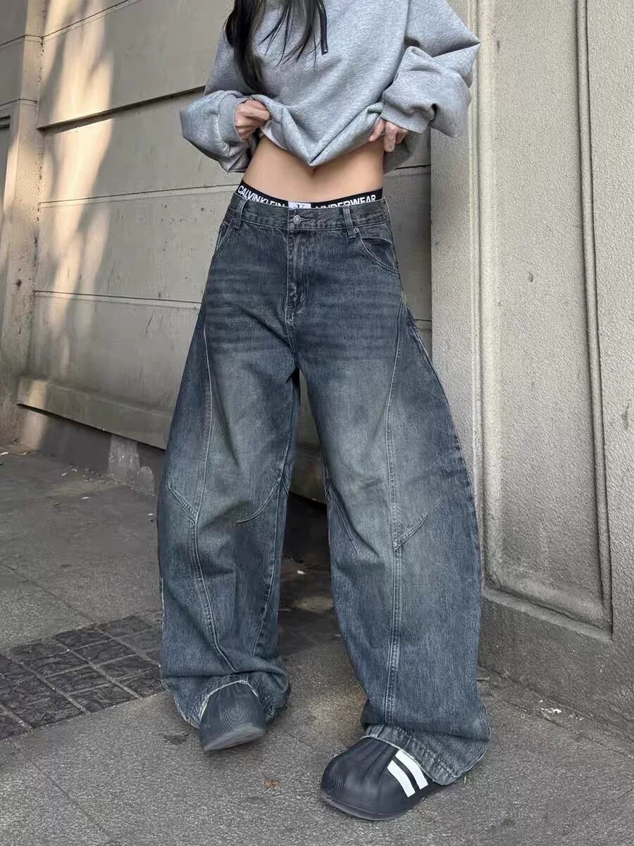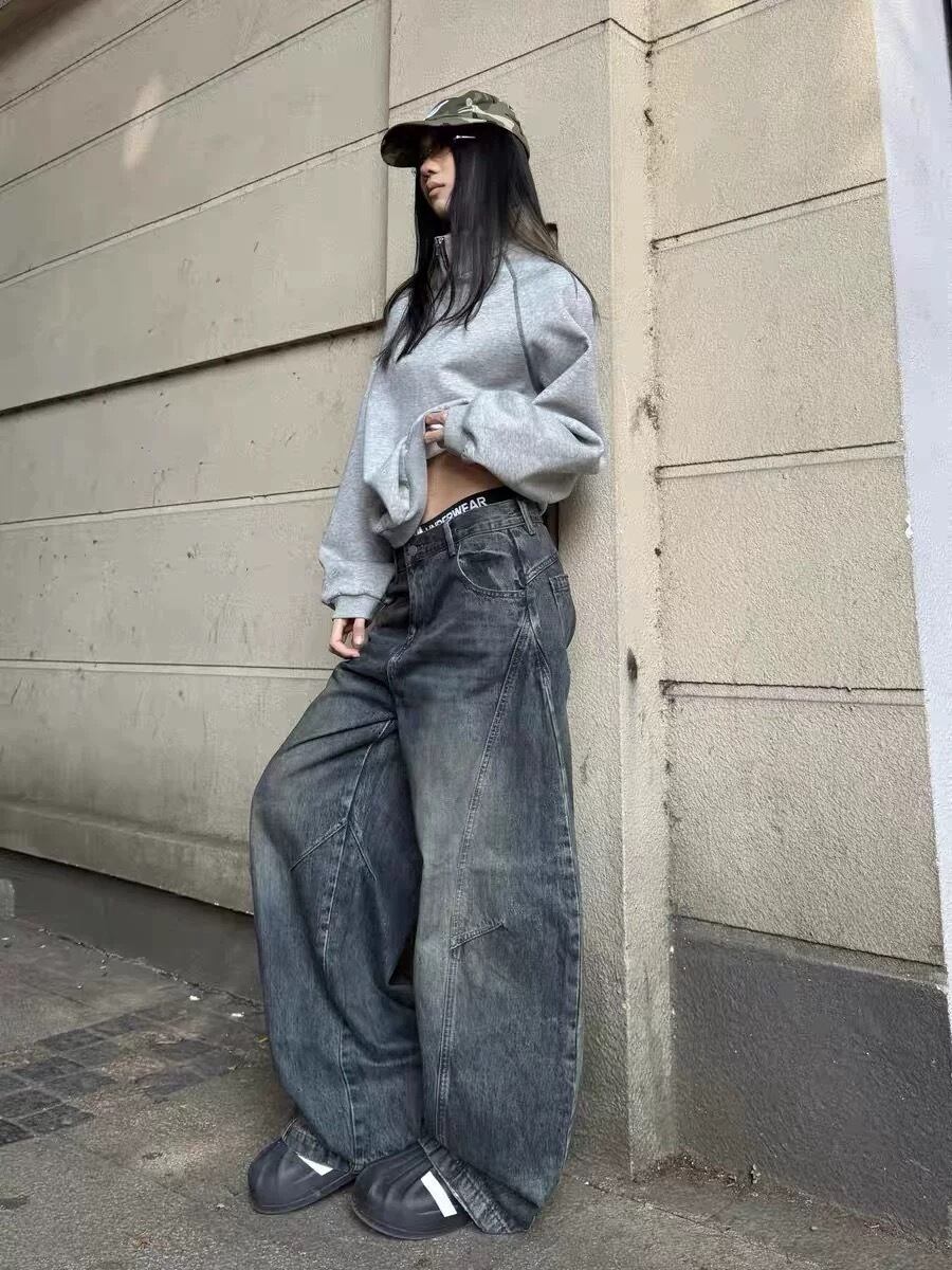【P3398STORE SELECT】Curved Wash Baggy Jeans