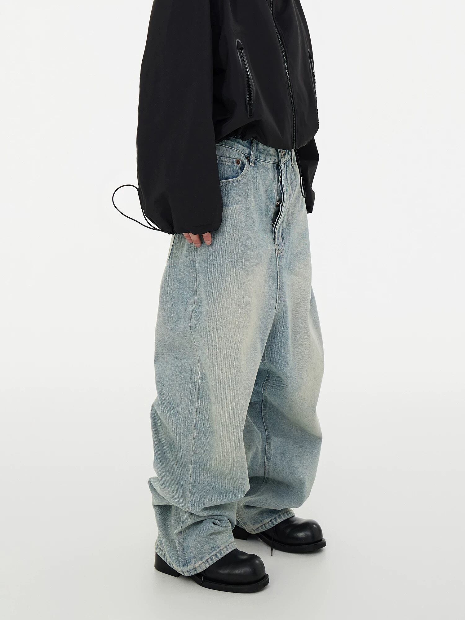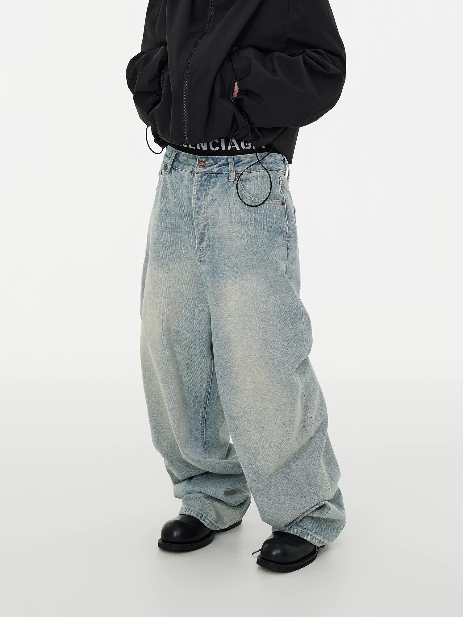 【ASTT】WHITE BLUE WASHED BAGGY JEANS