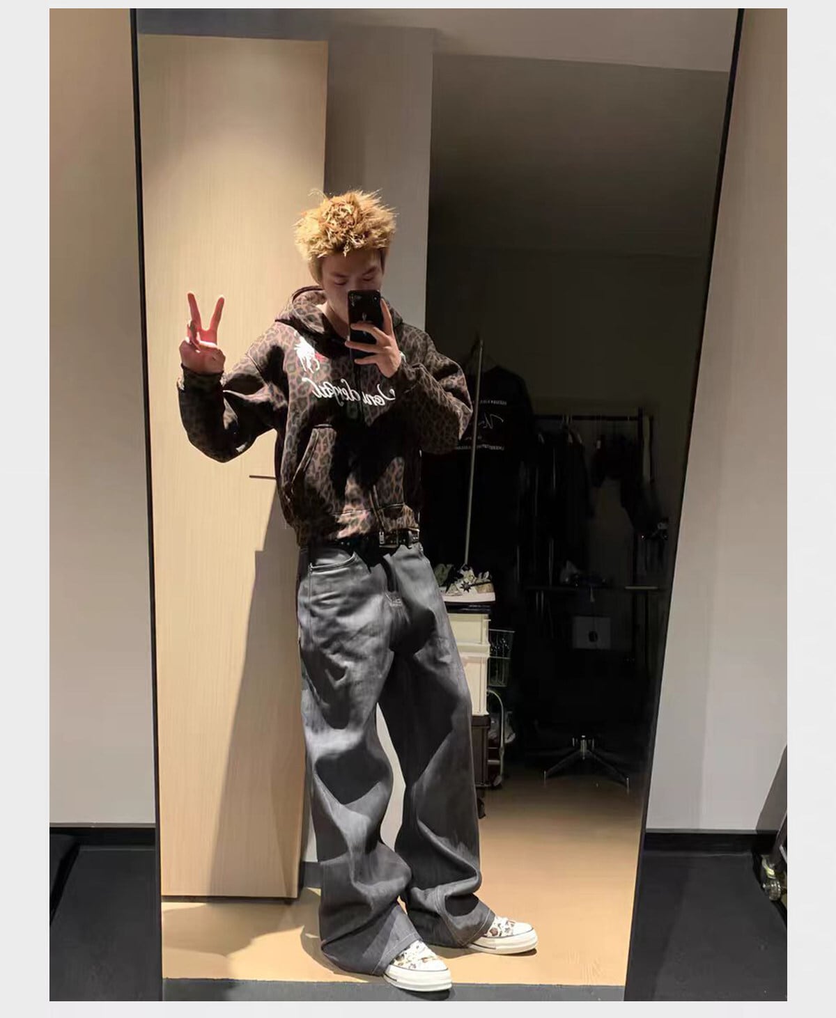 【P3398STORE SELECT】 Boxy Leopard Union Polo Hoodie